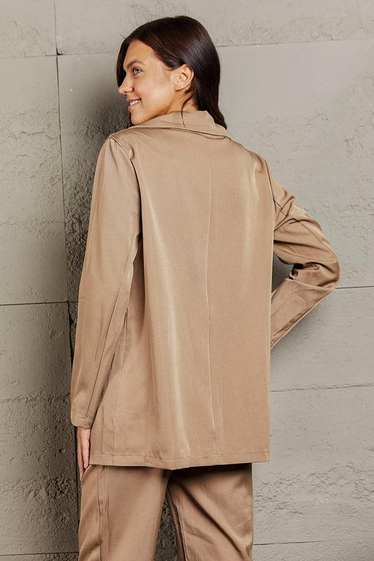 Lapel Collar Long Sleeve Blazer and Pants Set