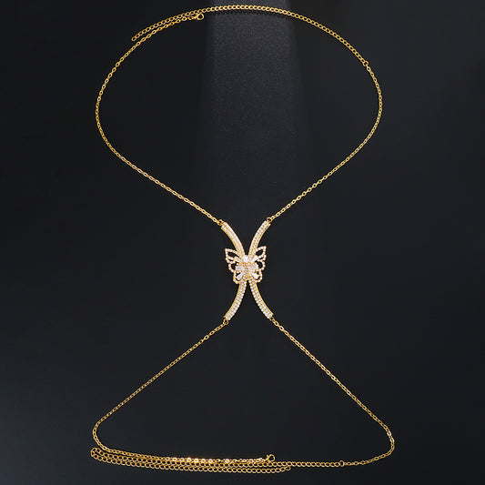 Rhinestone Chest Bracket Bras Bikini Luxury Zircon Butterfly Body Chain Underwear Jewelry